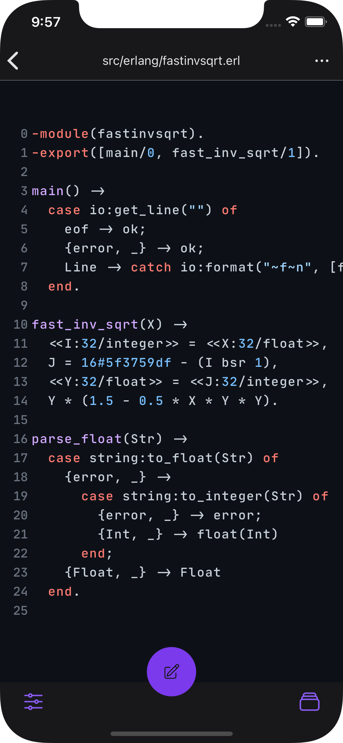 No, we believe code editing has its place on Desktop with popular editors. This app is designed to explore your code and take notes on it.