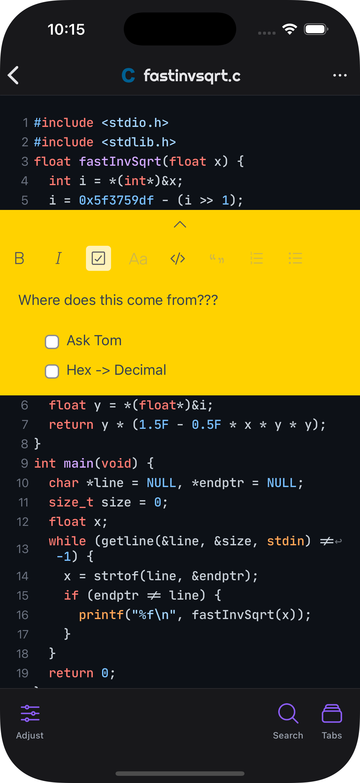 Take notes in developer's favorite Markdown. Familiar and simple enough for on-the-go notes.